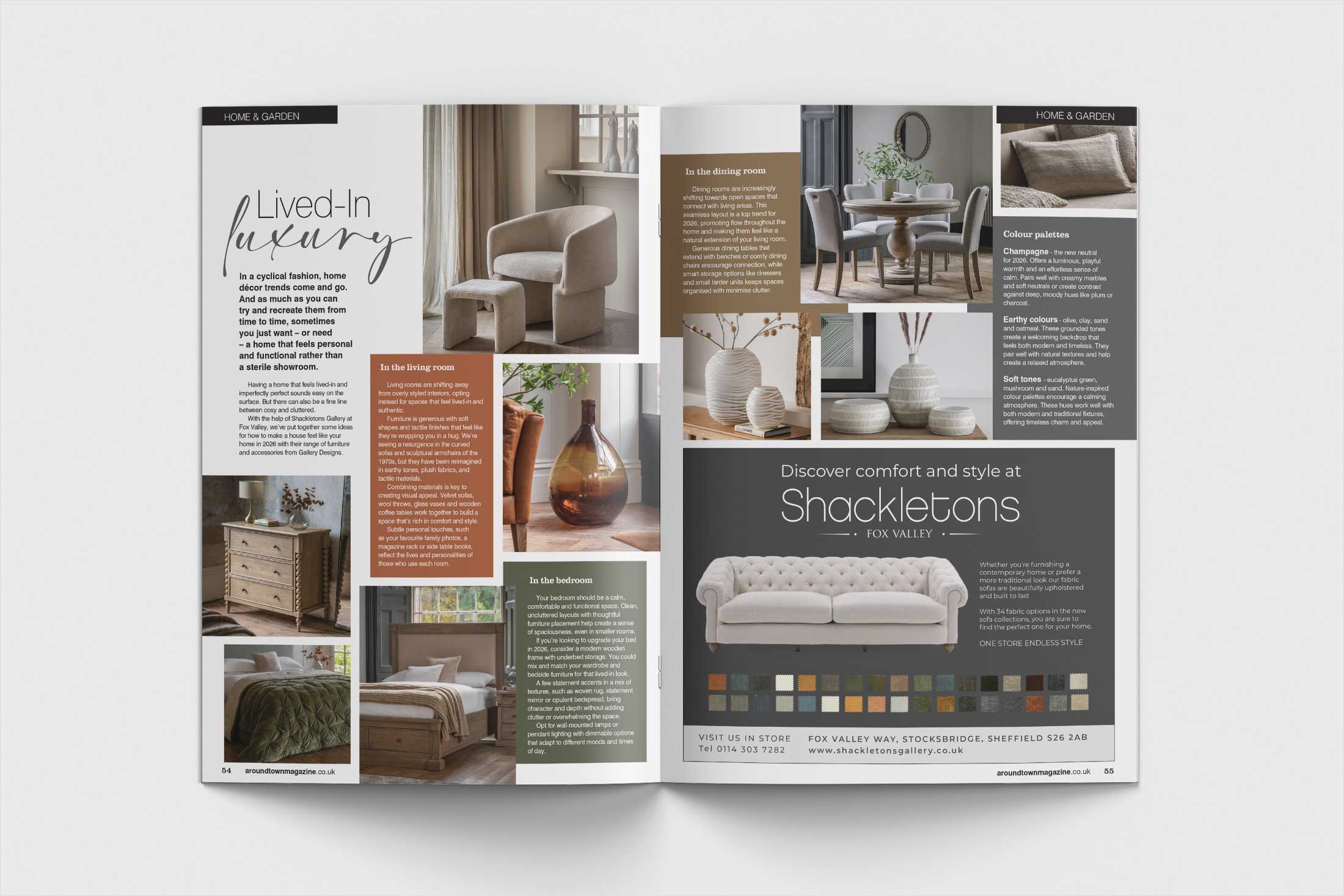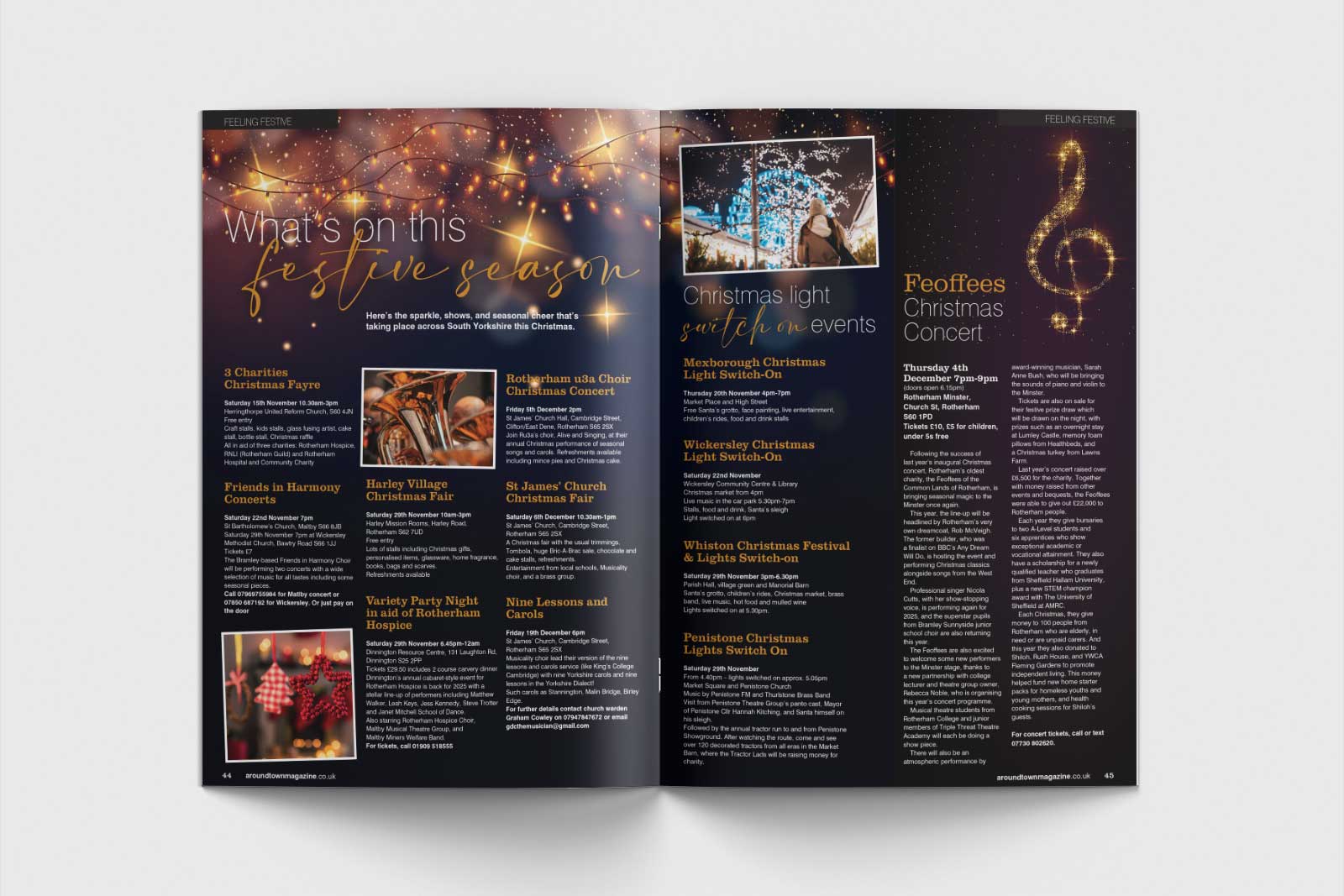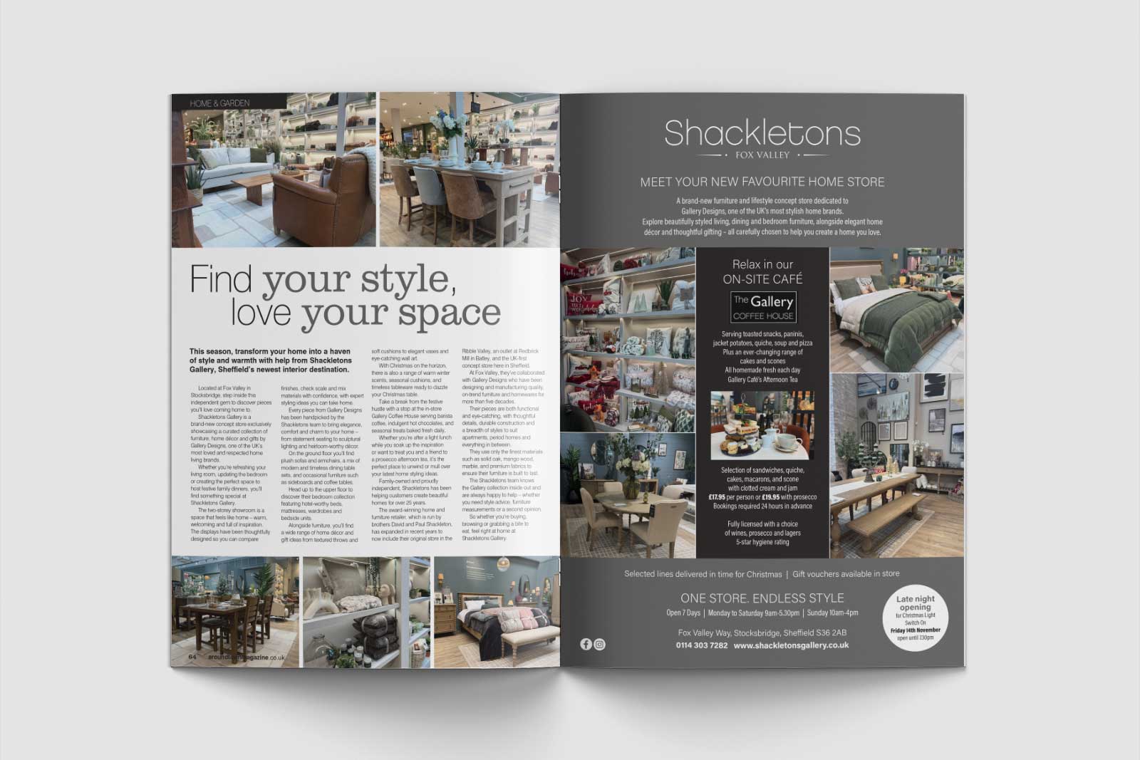 Today, we handle the complete magazine design process, from creating eye-catching editorial layouts and designing client adverts to overseeing print production. It’s a fast-paced yet rewarding project, and we’re committed to delivering each issue on time and to the highest standard, helping Aroundtown celebrate South Yorkshire with every edition.