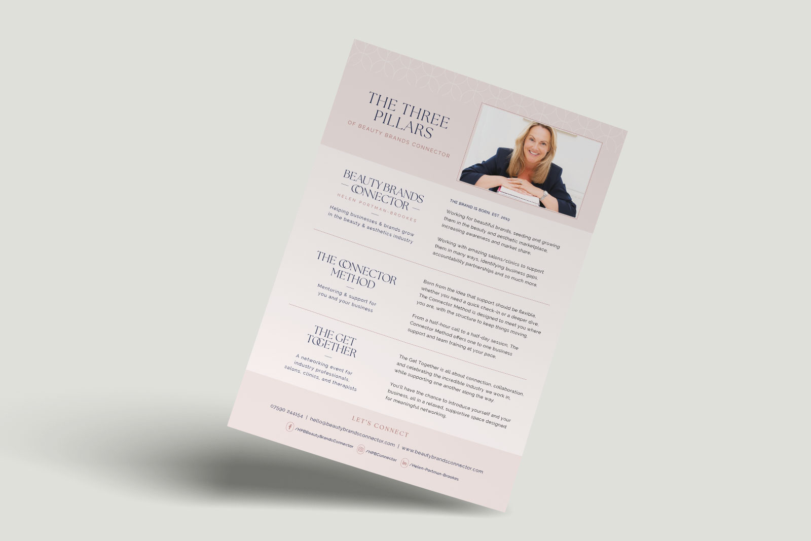 We saw a great opportunity to give Beauty Brand Connector’s visual identity a fresh lift, ensuring it reflected both the professionalism of the business and the warmth of Helen’s approach. We refined the colour palette to improve contrast adding brightness and softness to the brand.